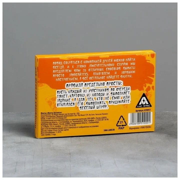 Купить игра для компании "фанты буханты" 20 карт от 100 руб. с доставкой до пункта выдачи в Осинниках. Интернет магазин ДекаМаркет. Оплата при получении.